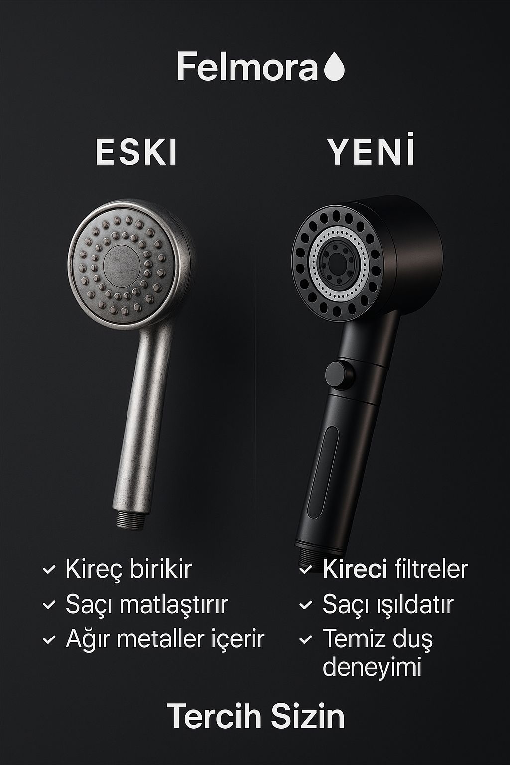 Felmora ile suyu kaynağında arıtın. Zararlı maddeleri filtremizde hapsediyoruz, size sadece sağlığı ve güzelliği bırakıyoruz. Saf suyun farkını ilk duşta hissedeceksiniz.
